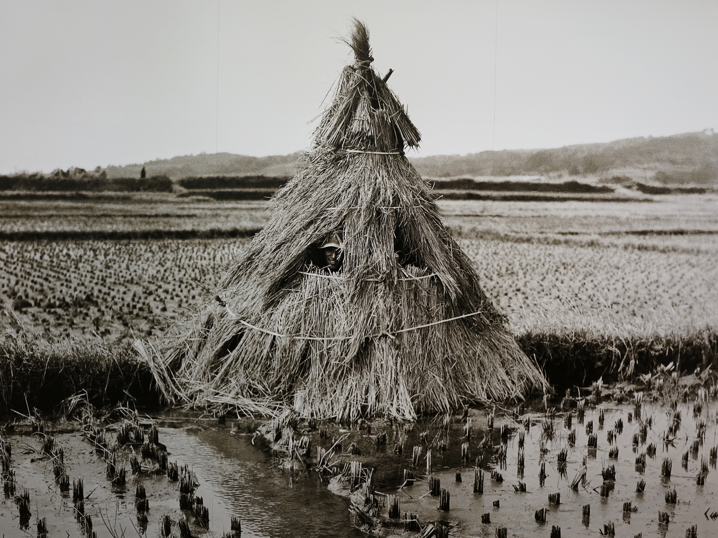 (苦労して作り上げた野鳥撮影用藁葺きブラインド)