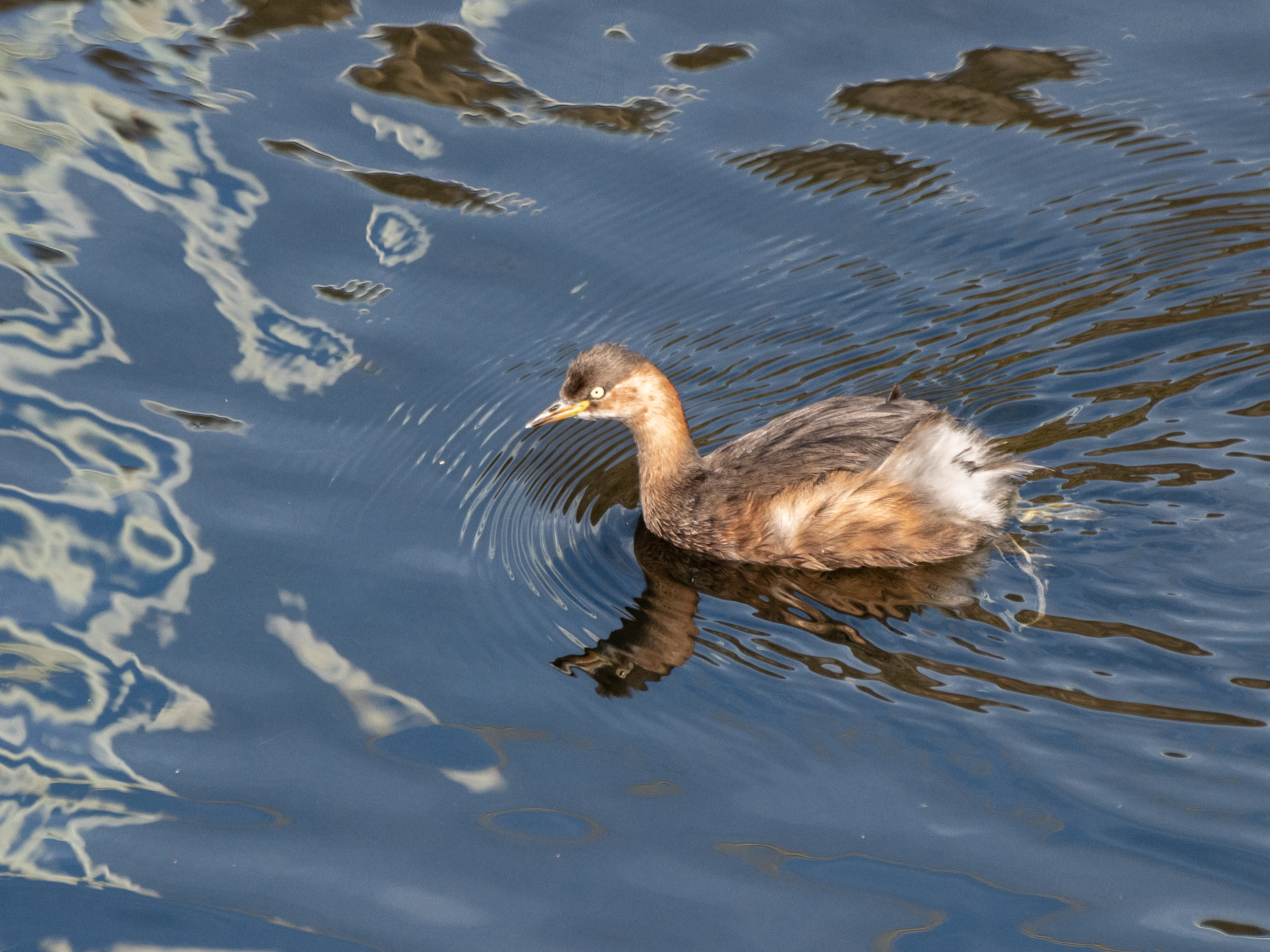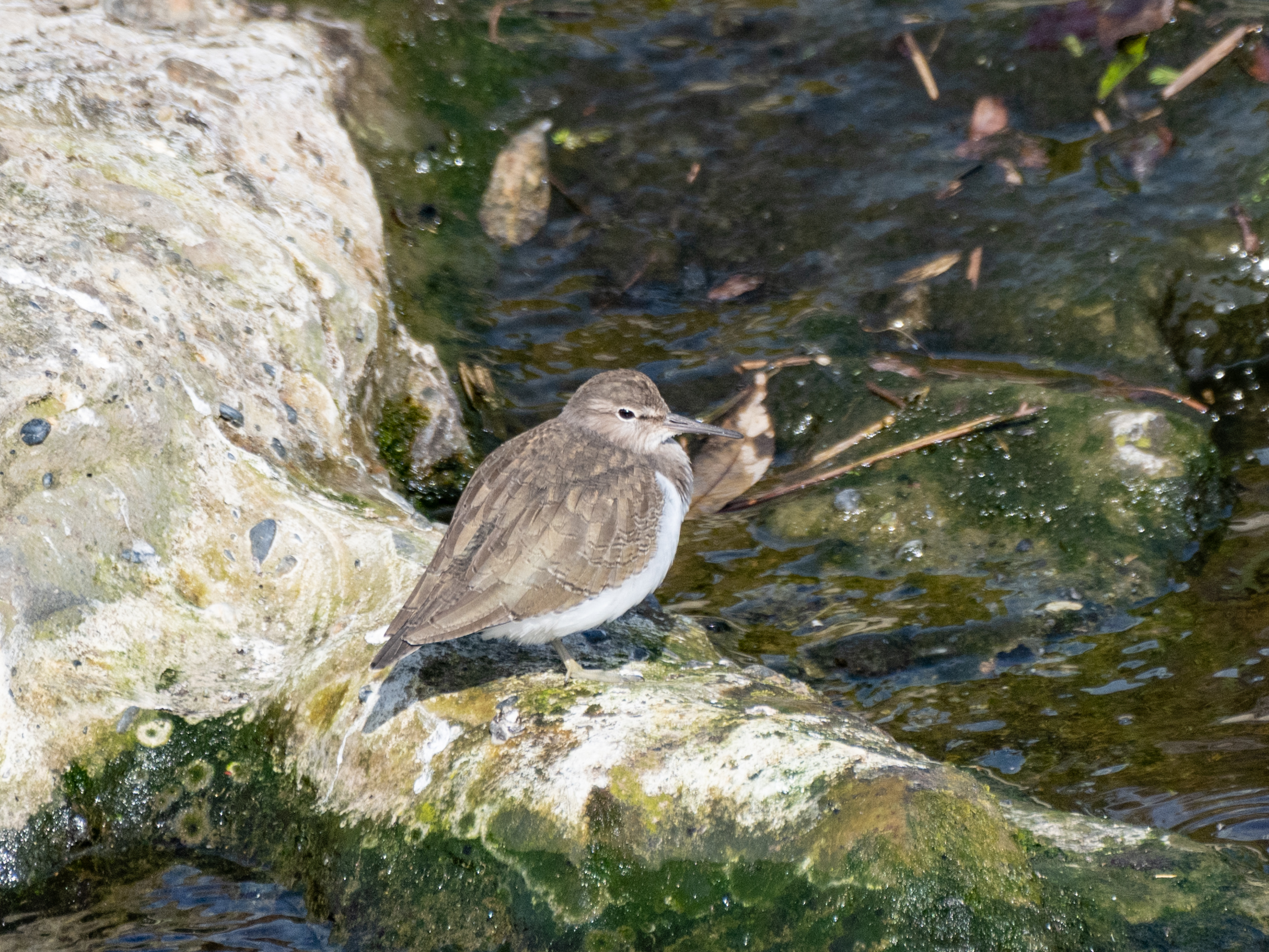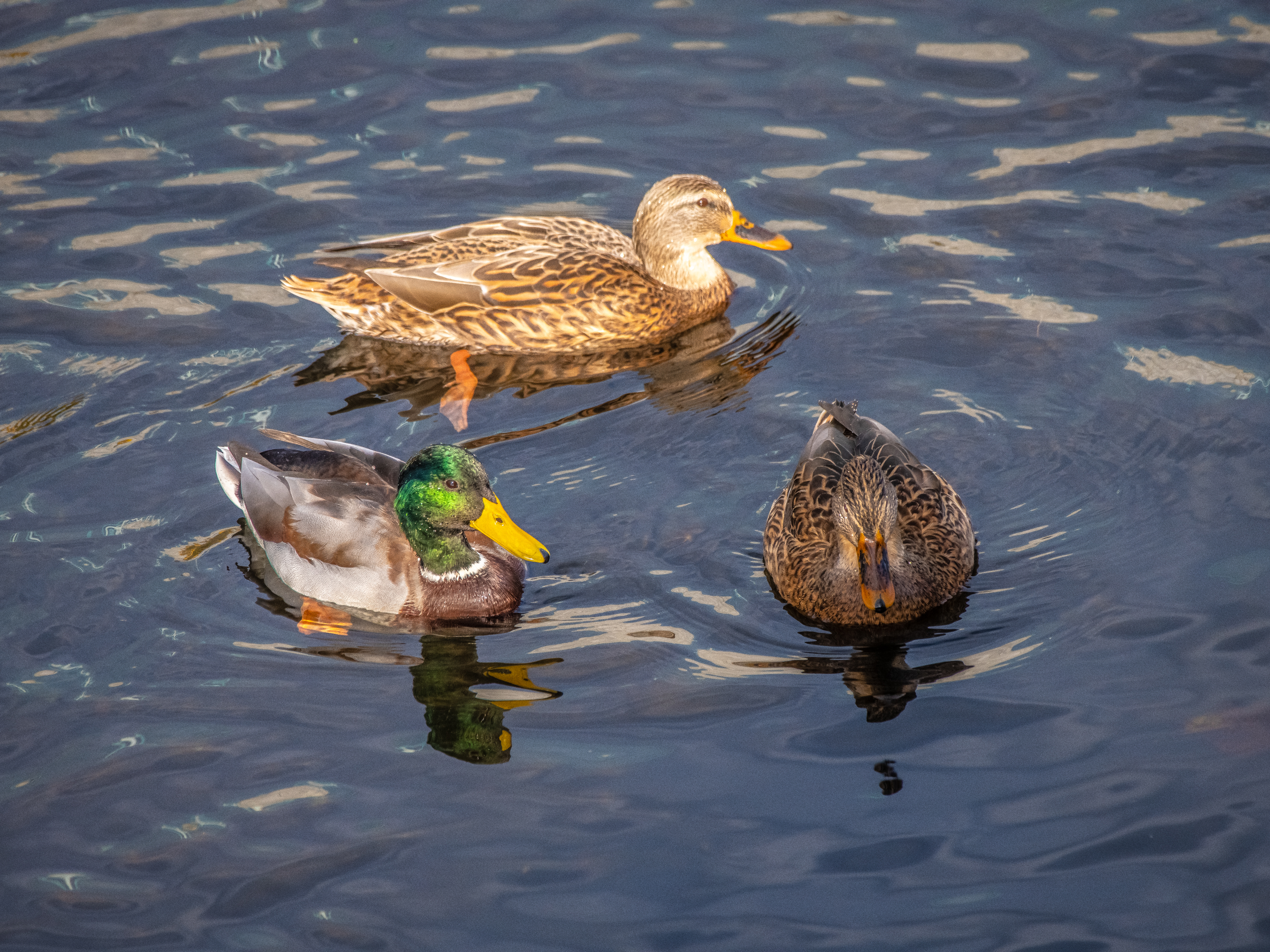 田んぼエリアを通り過ぎ、恩田川を覗くと、マガモ家族の姿が…