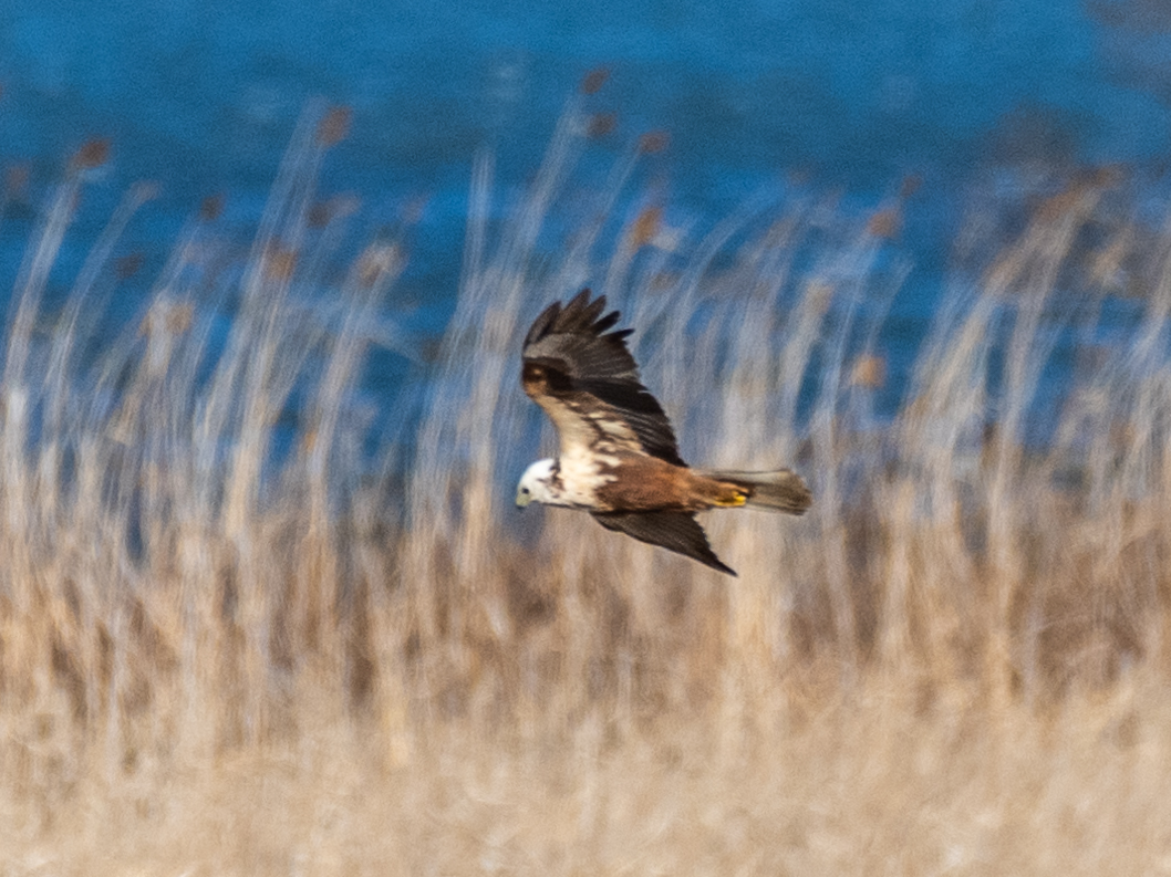 ケアシノスリを存分に堪能した後、14時過ぎにいつものパターンで浮島・妙岐ノ鼻に行き、チュウヒの塒入りを観察しました。 最近よく観かける白頭のチュウヒがすぐ登場しました。(若鳥?)