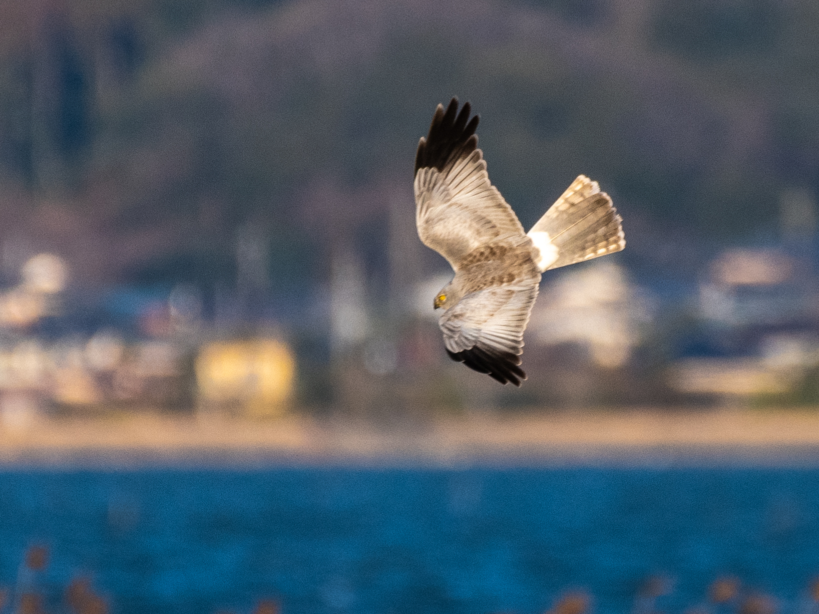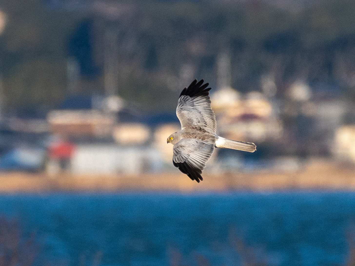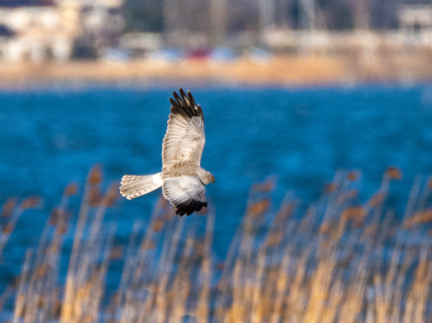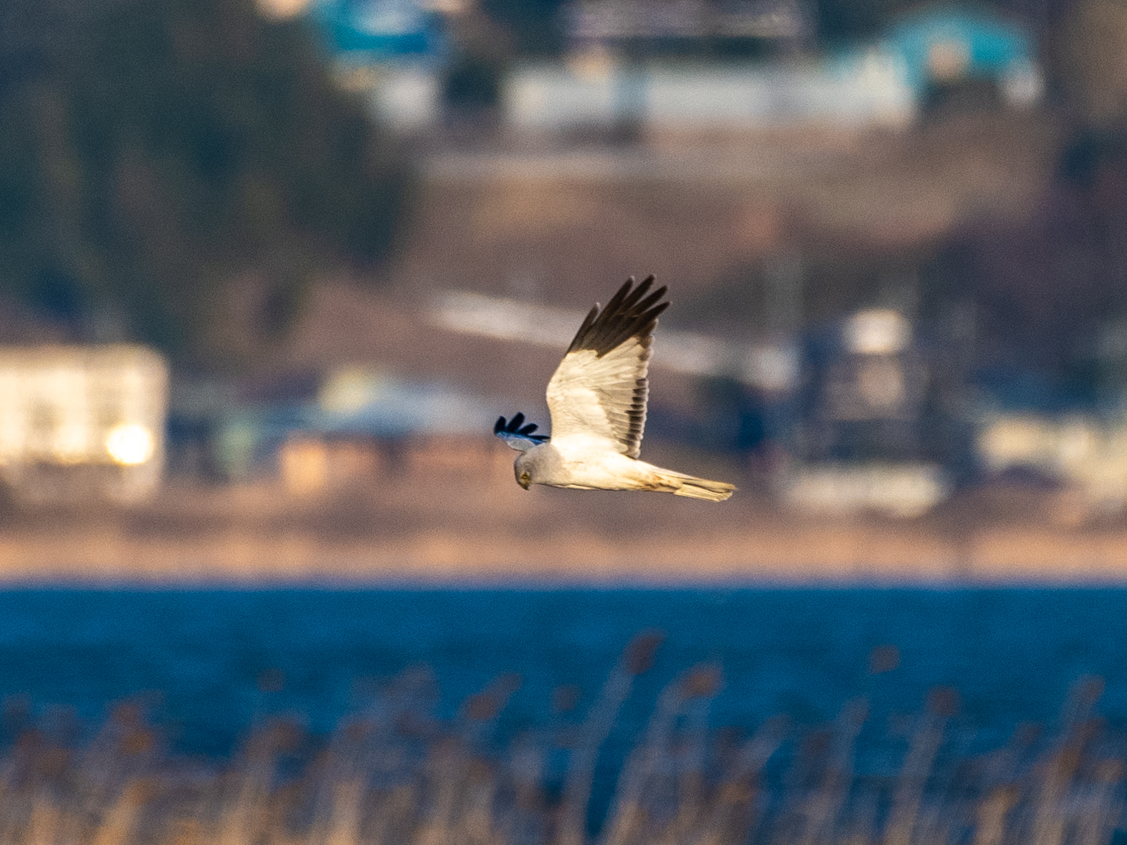 この日は16時前にハイイロチュウヒ・オスが一羽登場しました。比較的明るい時間帯のため、画像も多少スッキリしたものになりました。