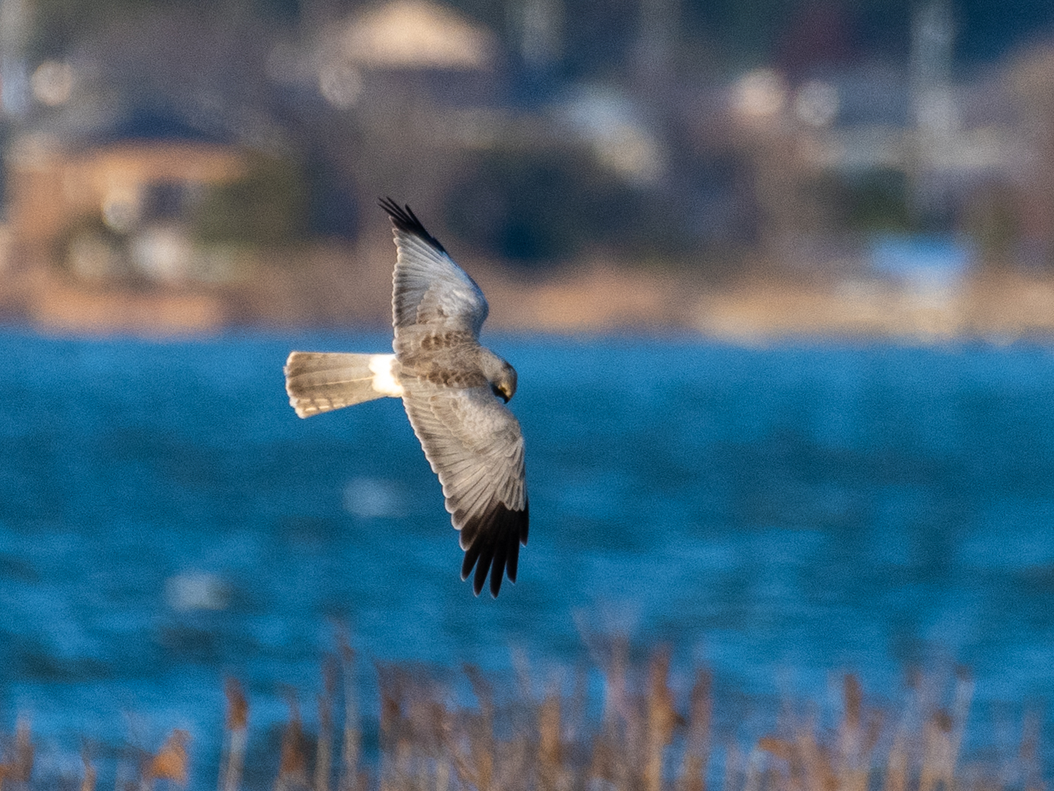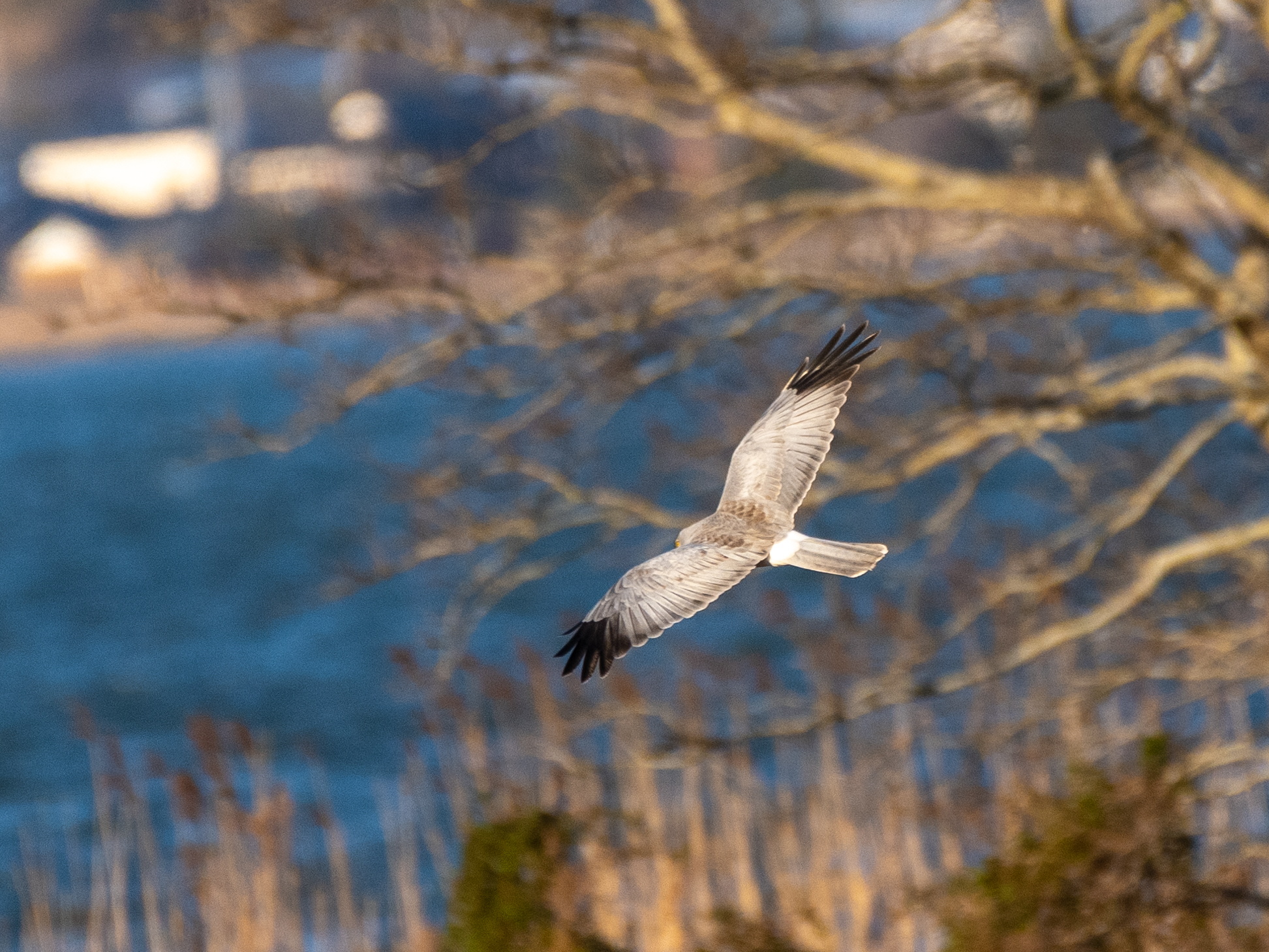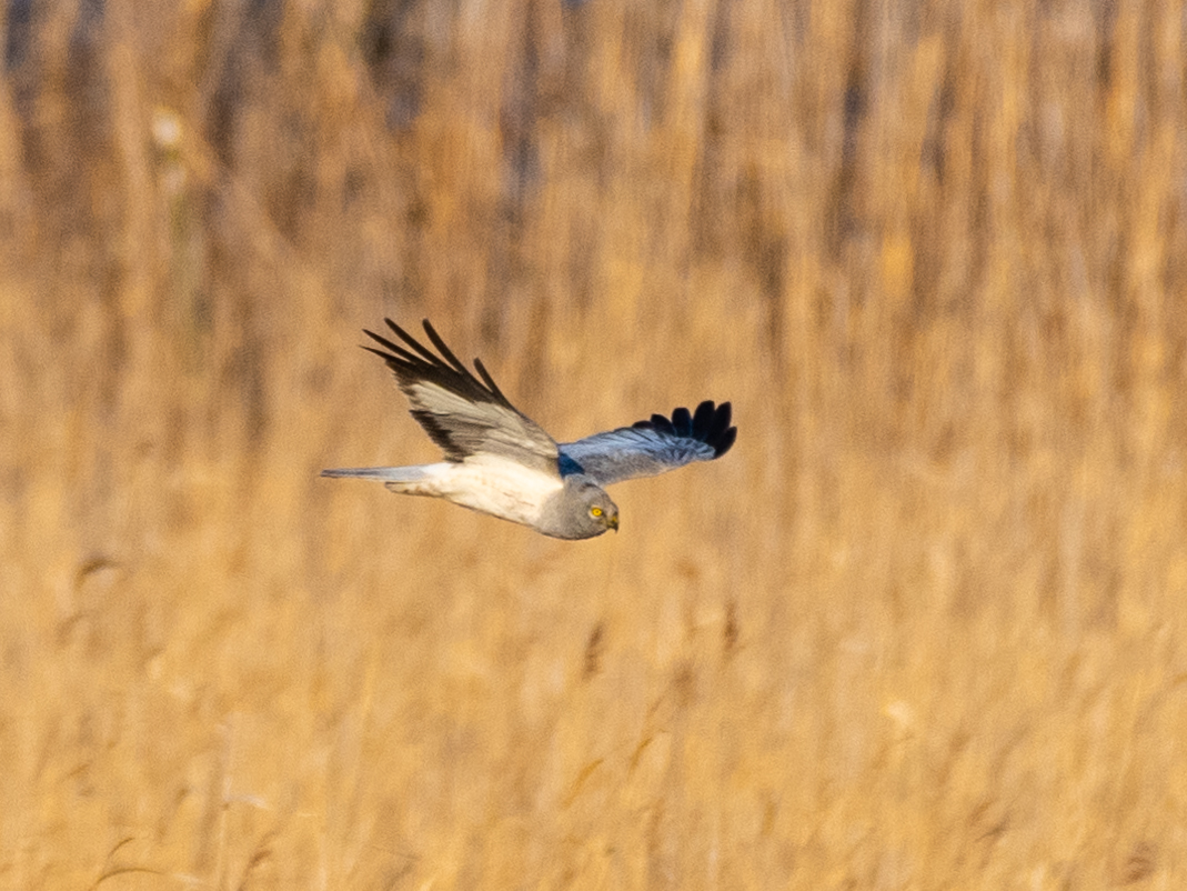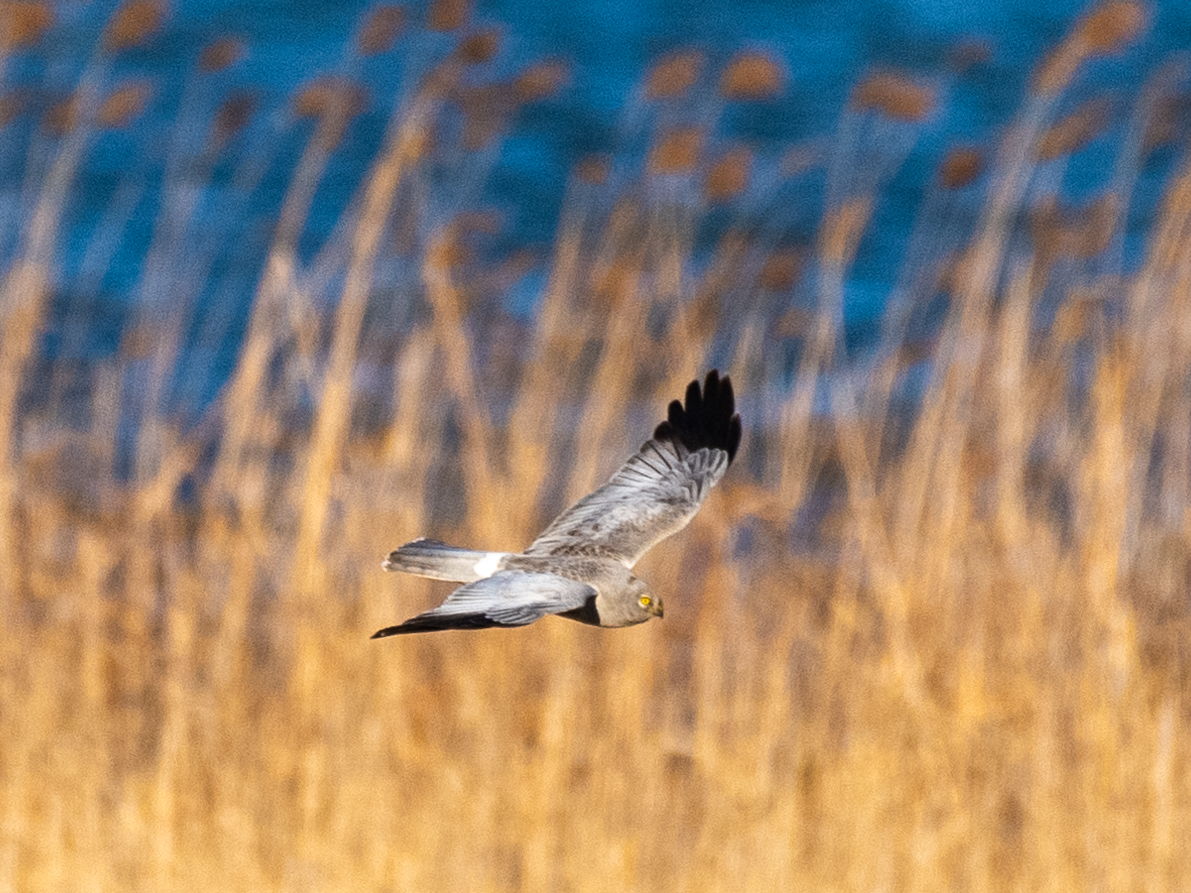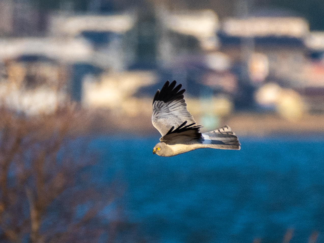 この日は16時前にハイイロチュウヒ・オスが一羽登場しました。比較的明るい時間帯のため、画像も多少スッキリしたものになりました。