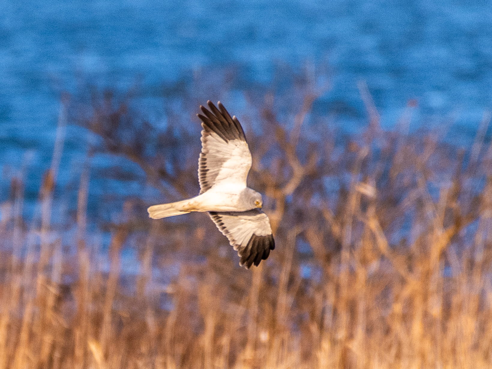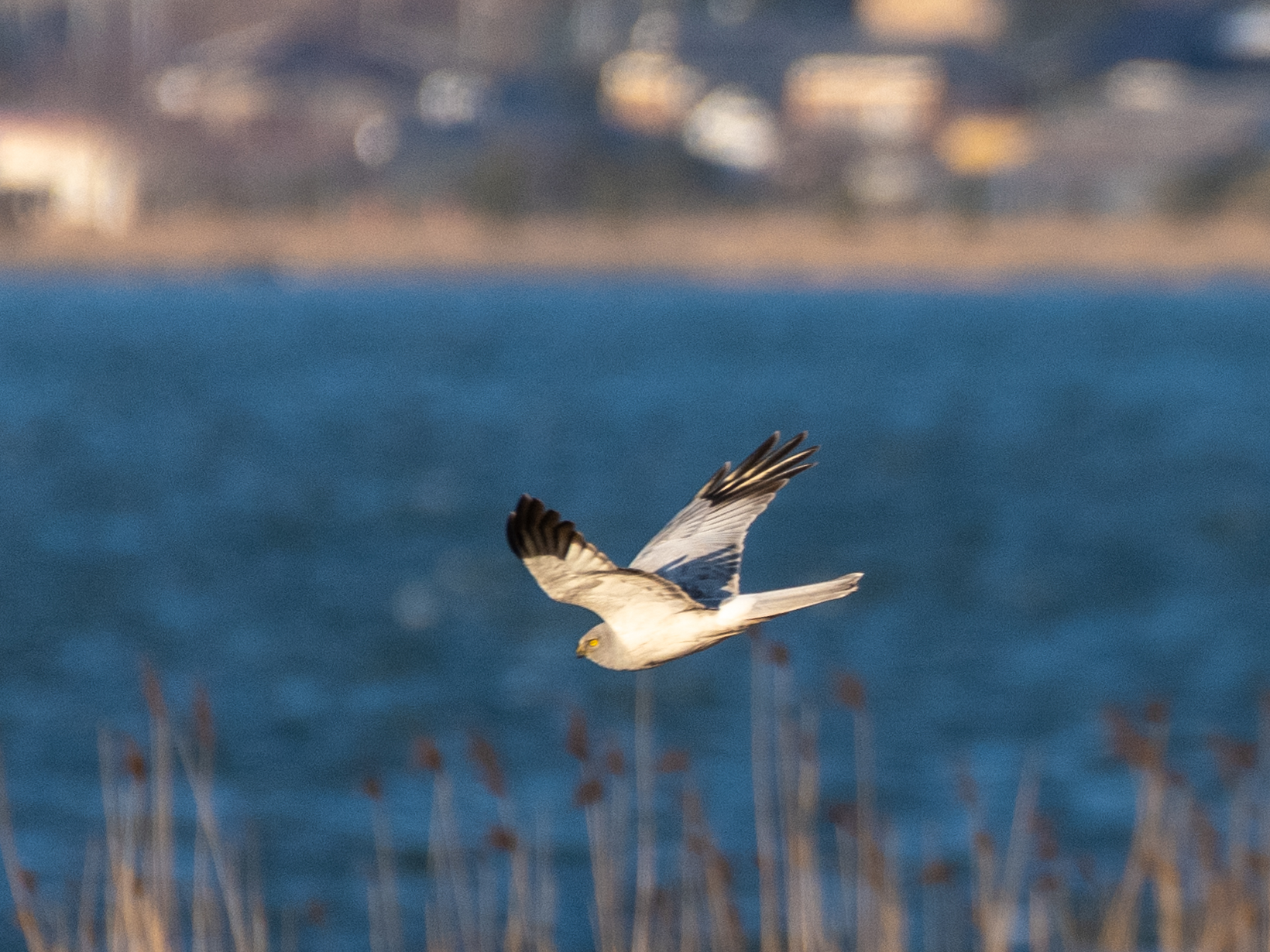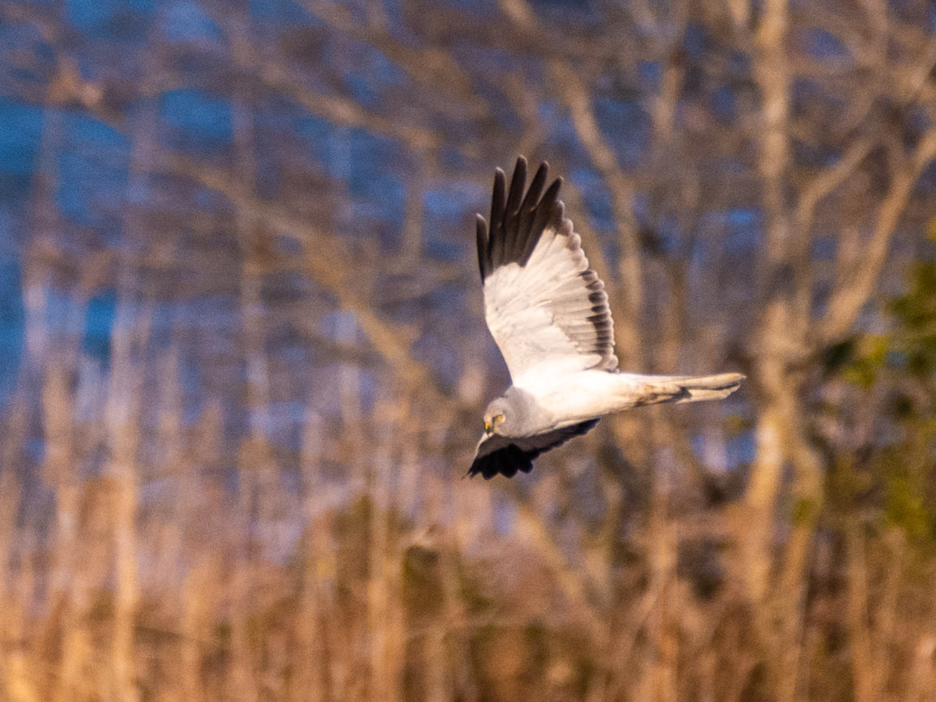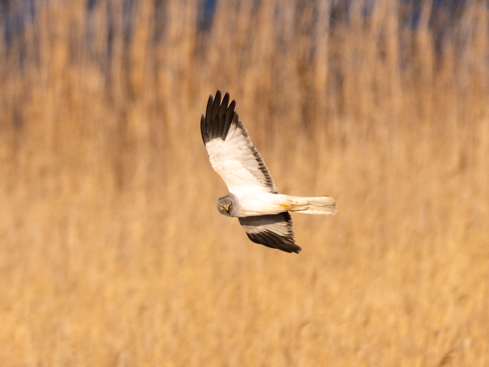 この日は16時前にハイイロチュウヒ・オスが一羽登場しました。比較的明るい時間帯のため、画像も多少スッキリしたものになりました。