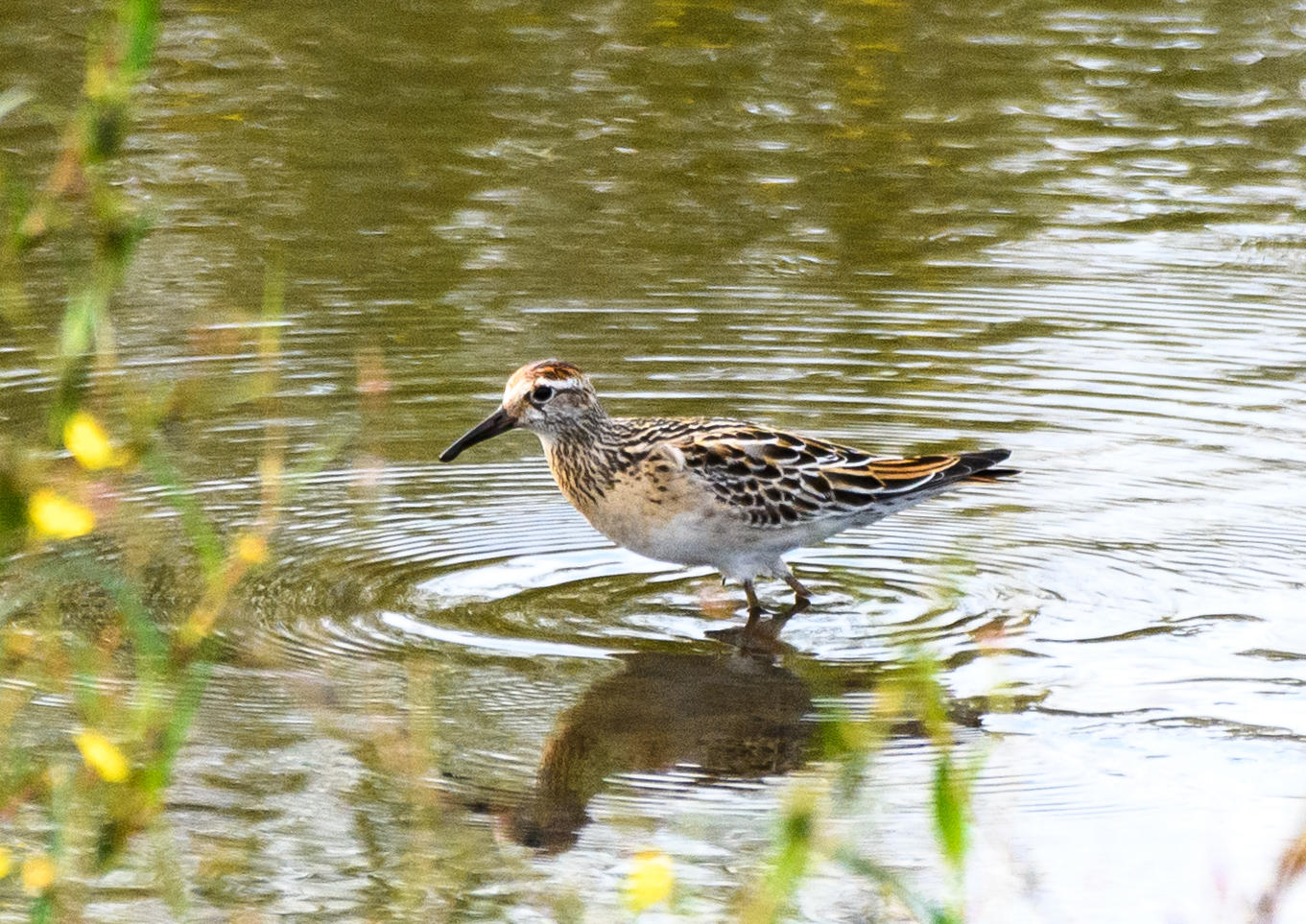 場所を大きく変え、蓮田を歩いているとオジロトウネンが2羽いました。⇩