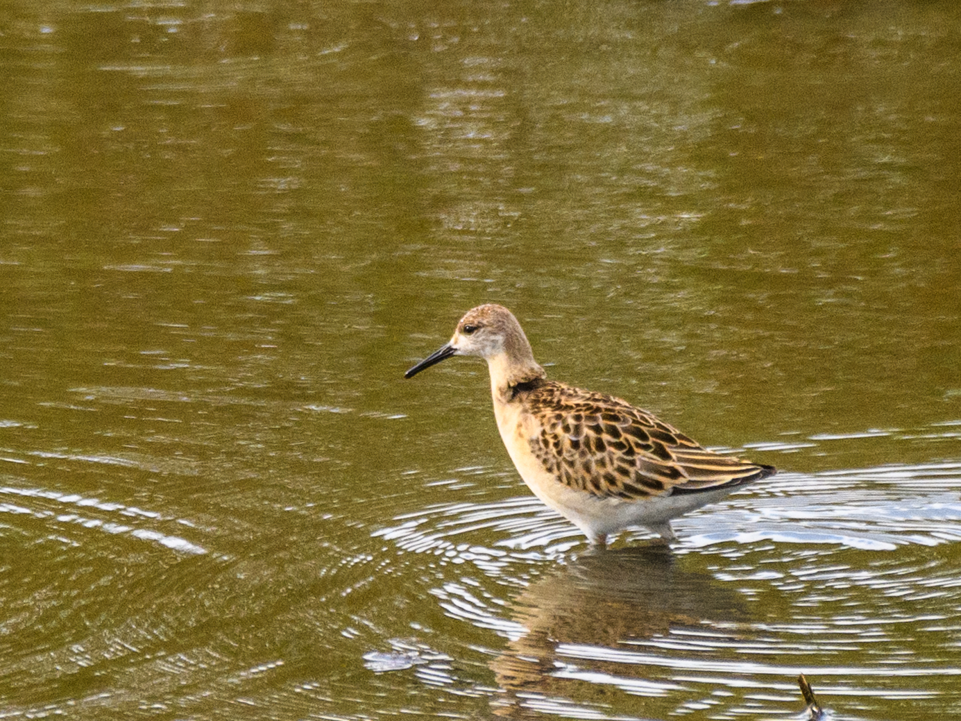 ウズラシギのそばには一羽のエリマキシギ(冬羽)がいました。いつかあの派手な襟巻をしているオス(夏羽)を観たいものです。⇩