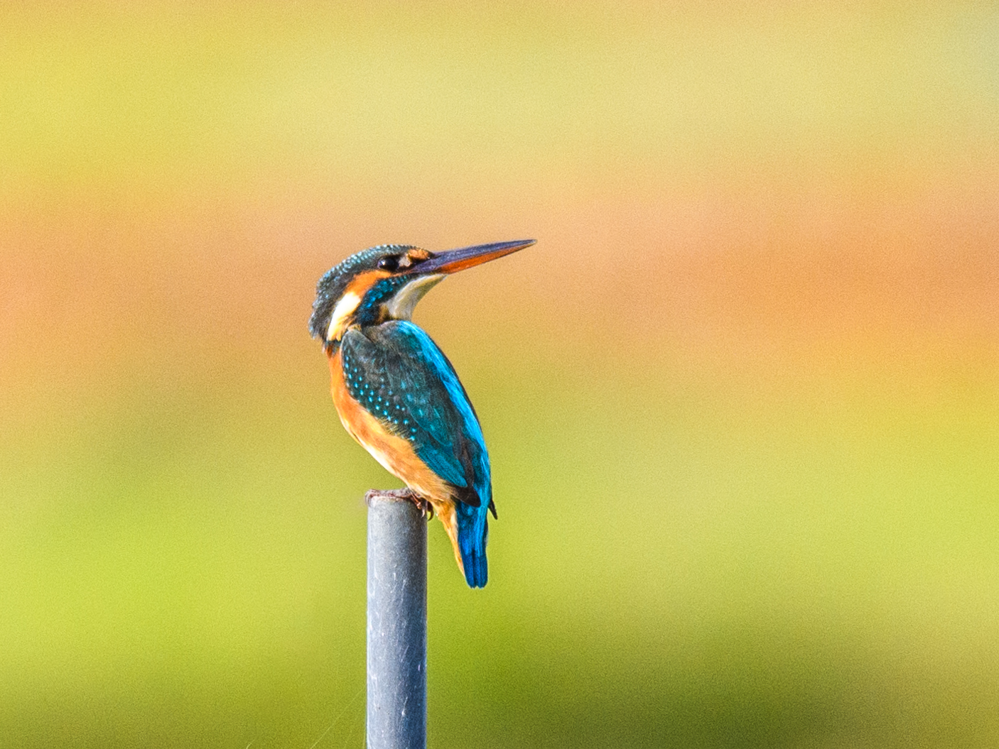 (蓮田付近の支柱に佇むカワセミ)
