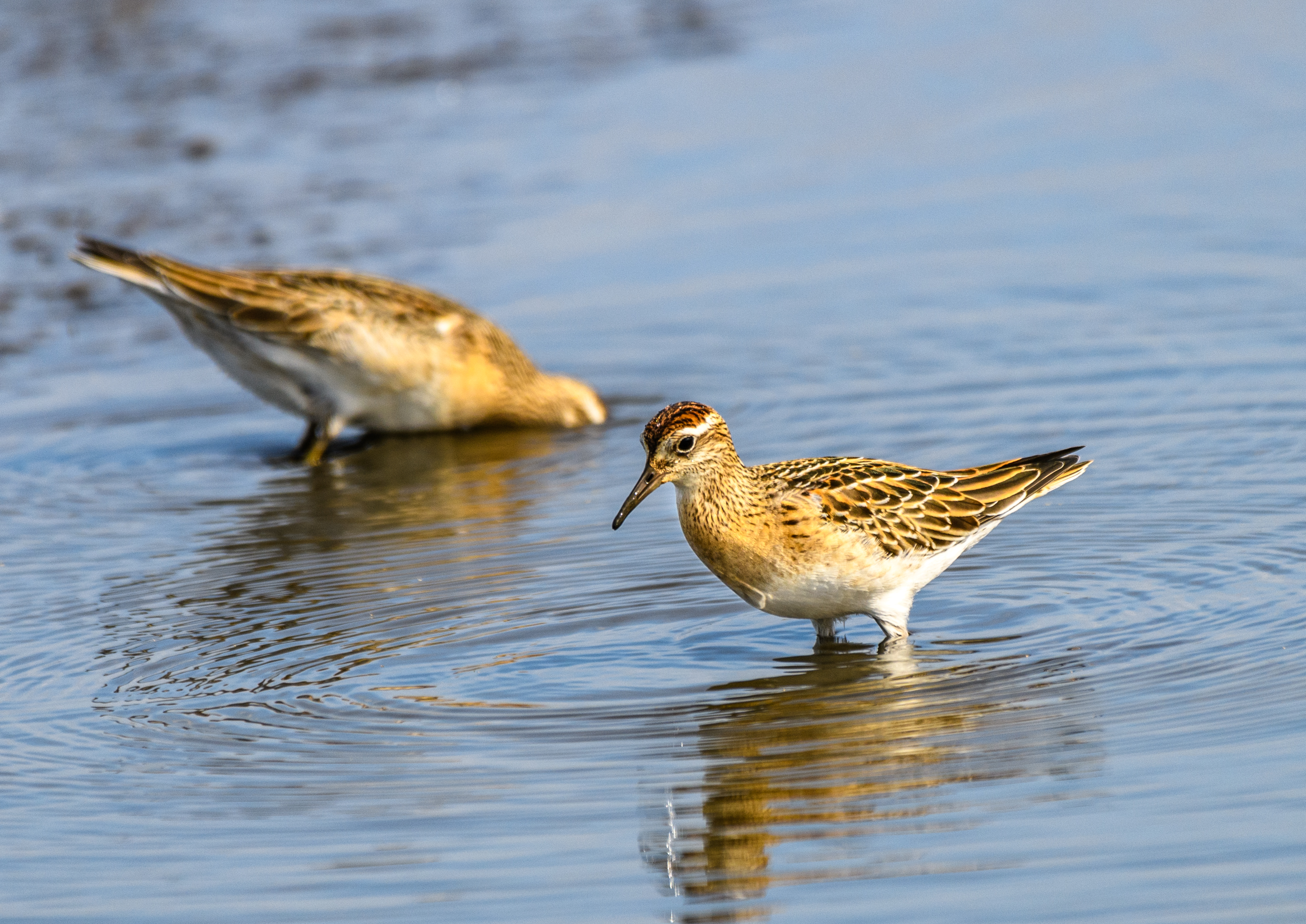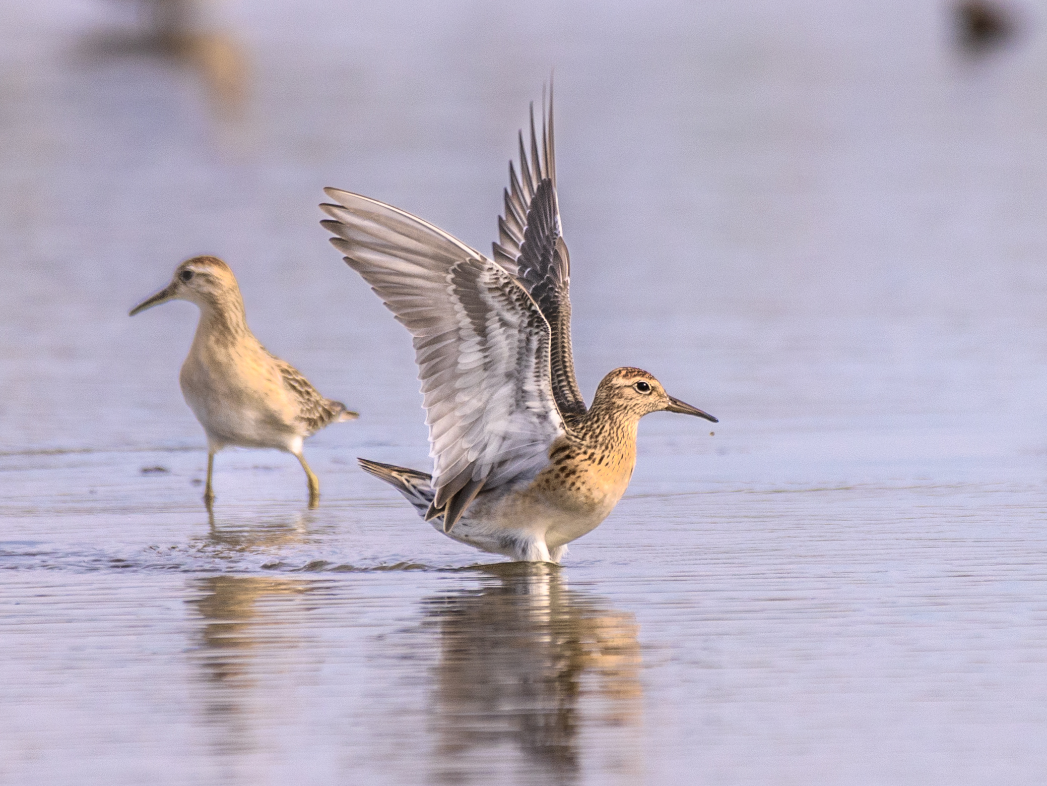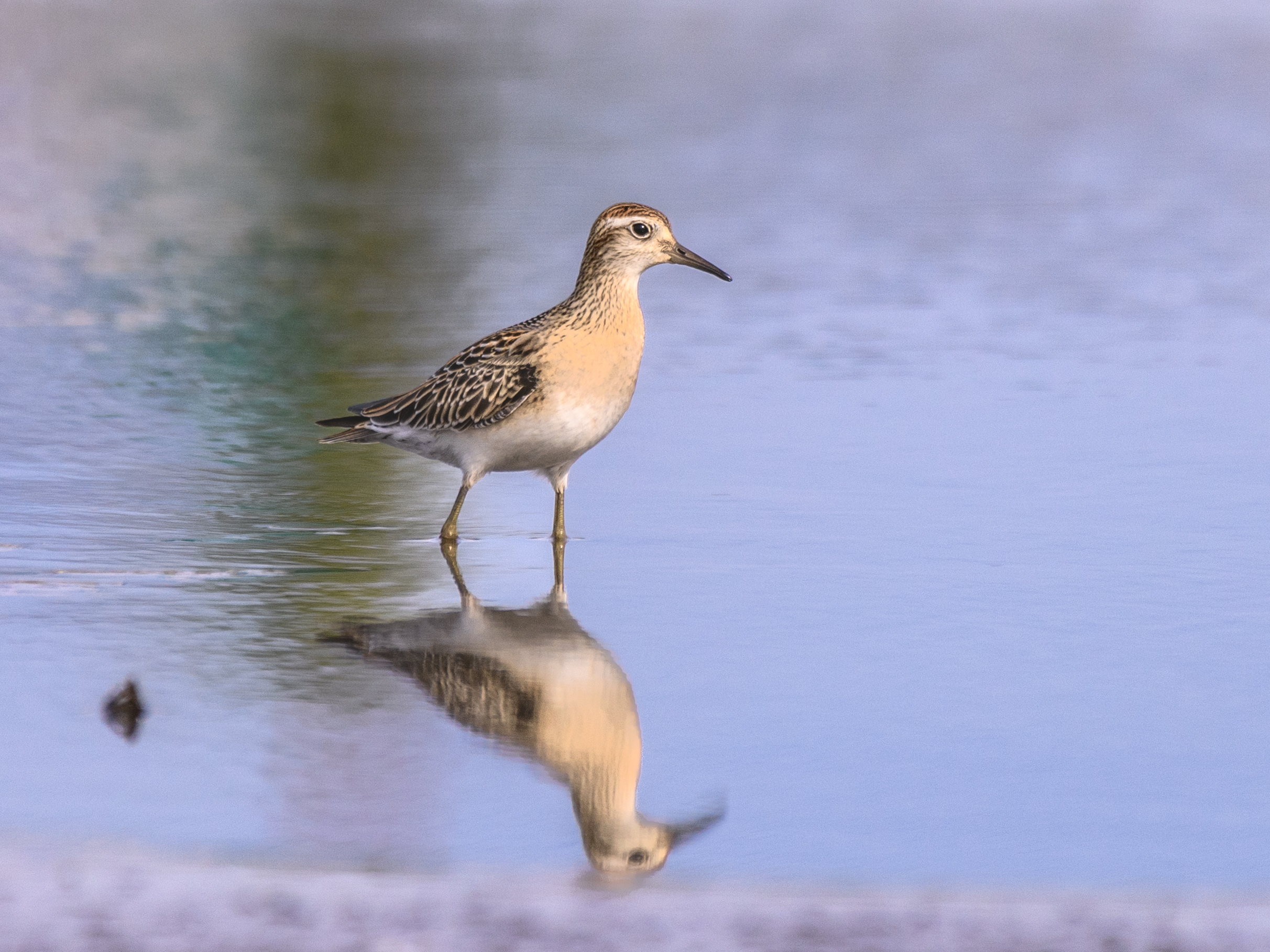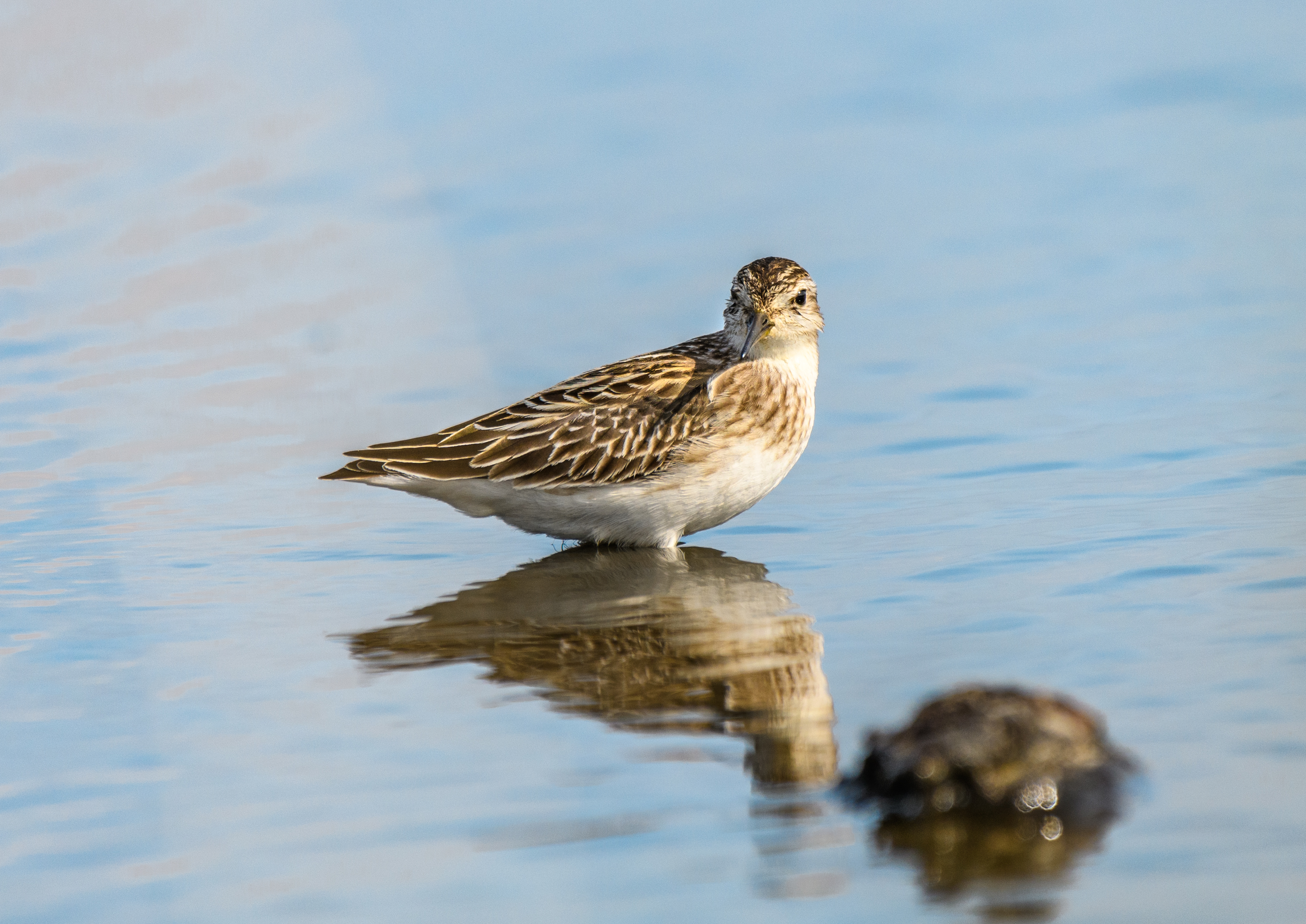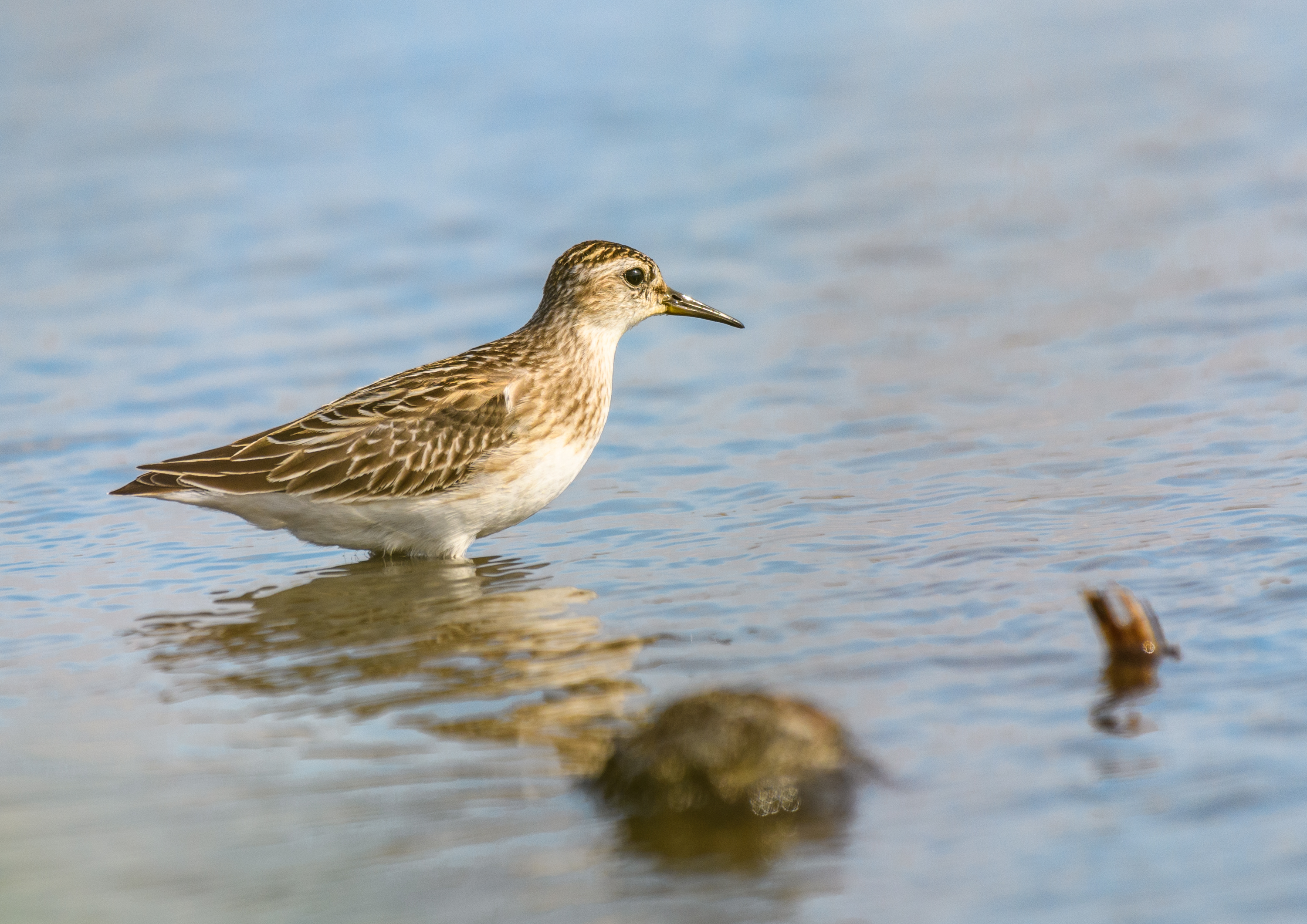 ウズラシギの群れの中にヒバリシギを一羽見つけることが出来ました。⇩