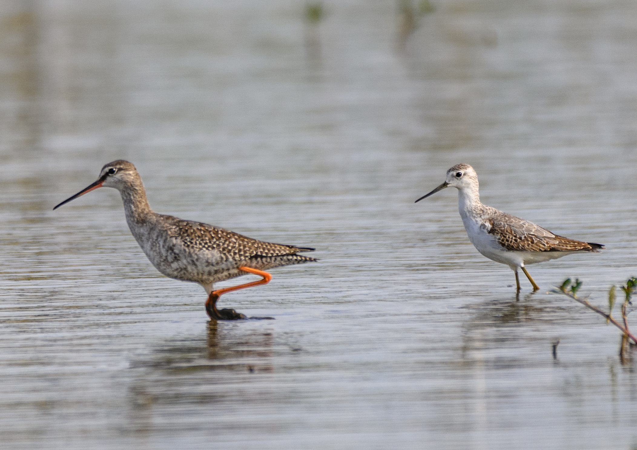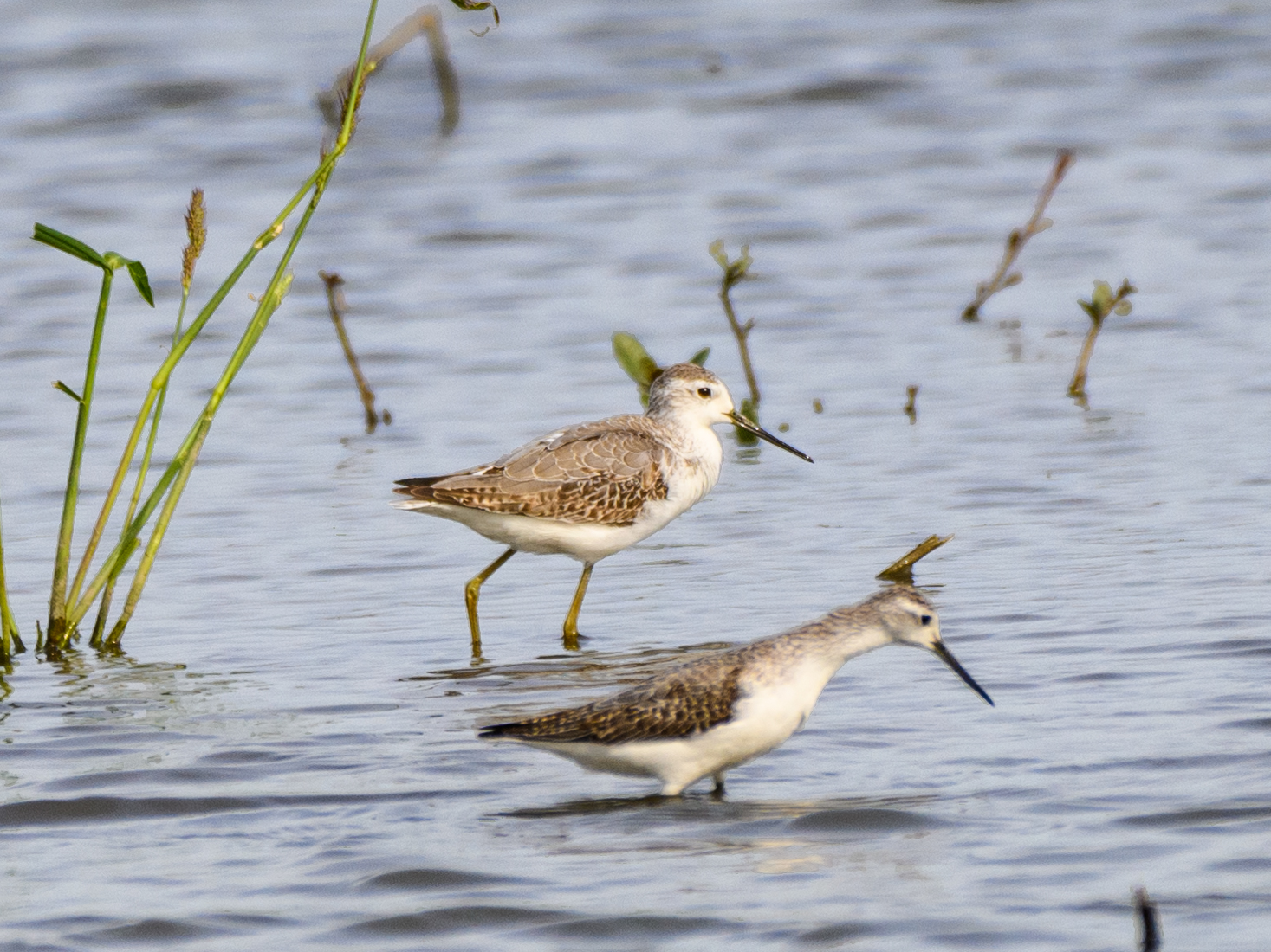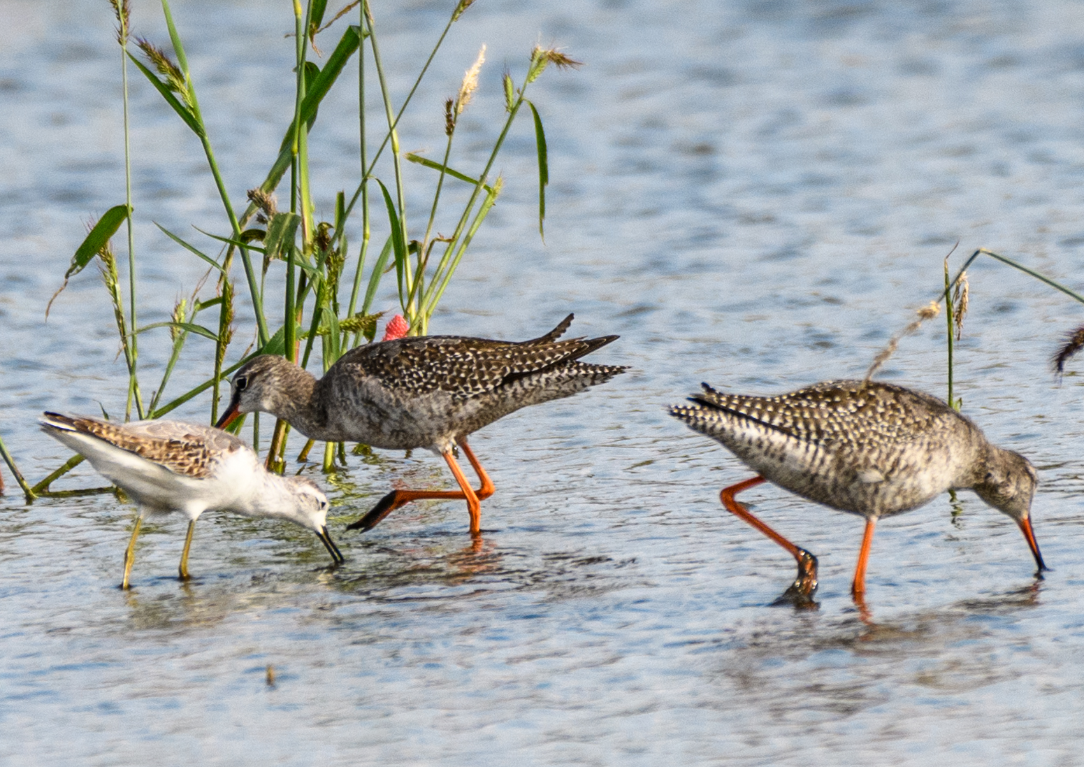 コアオアシシギの群れにはツルシギの群れが加わっていました。⇩