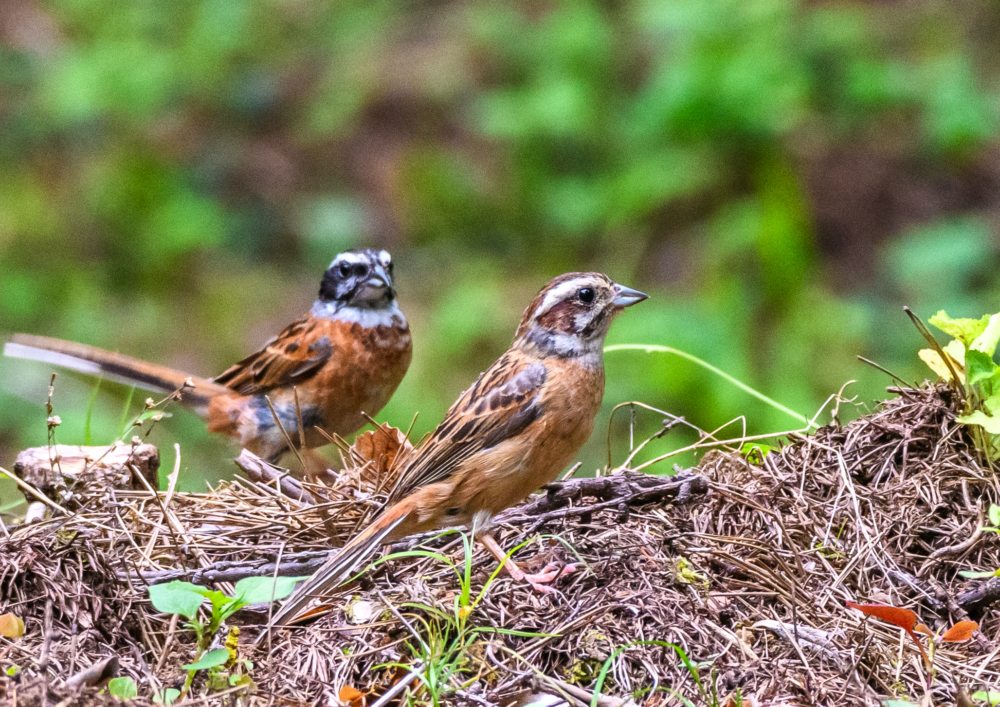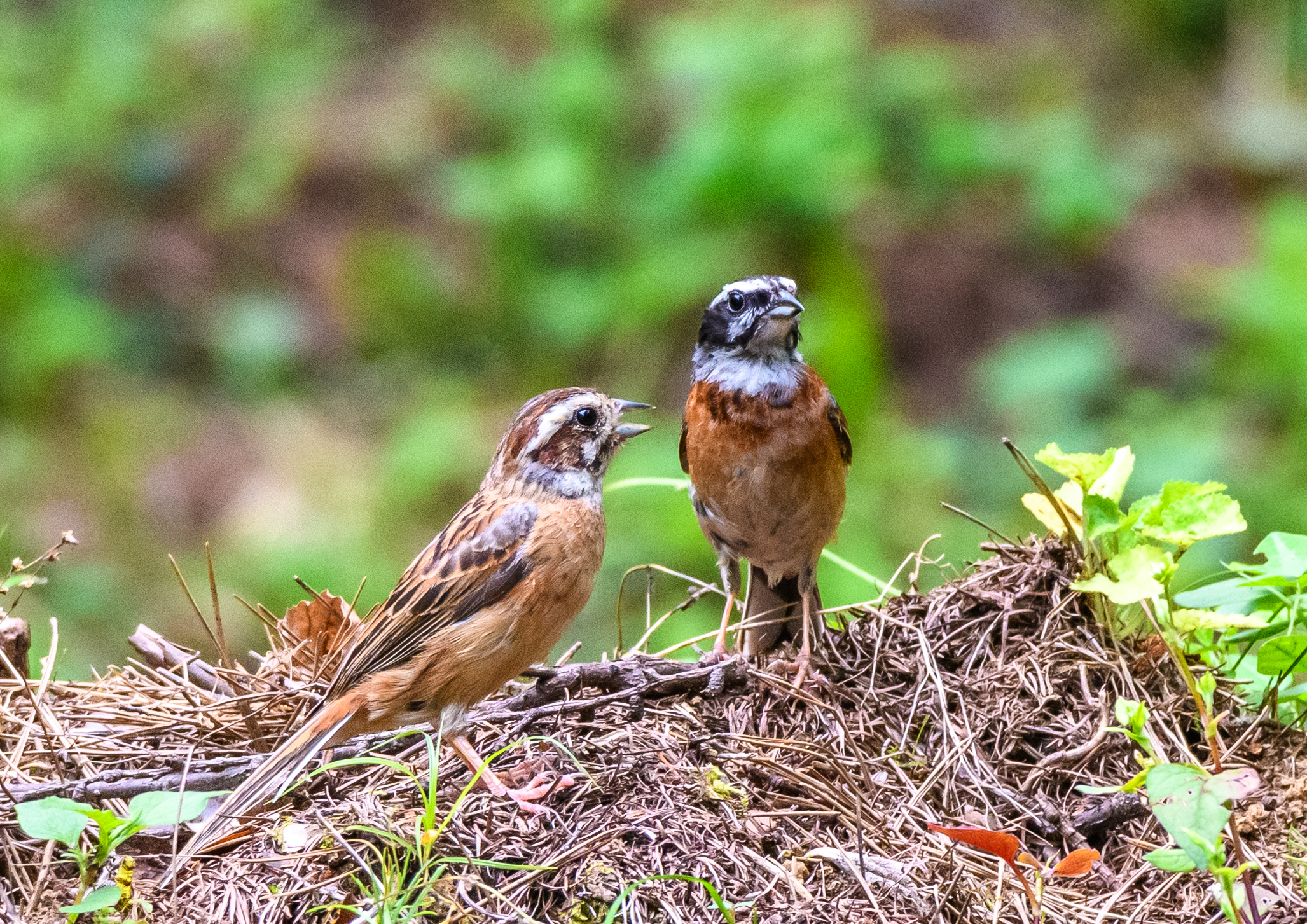 ここの常連ホオジロの若鳥が2羽仲良く登場です。⇩