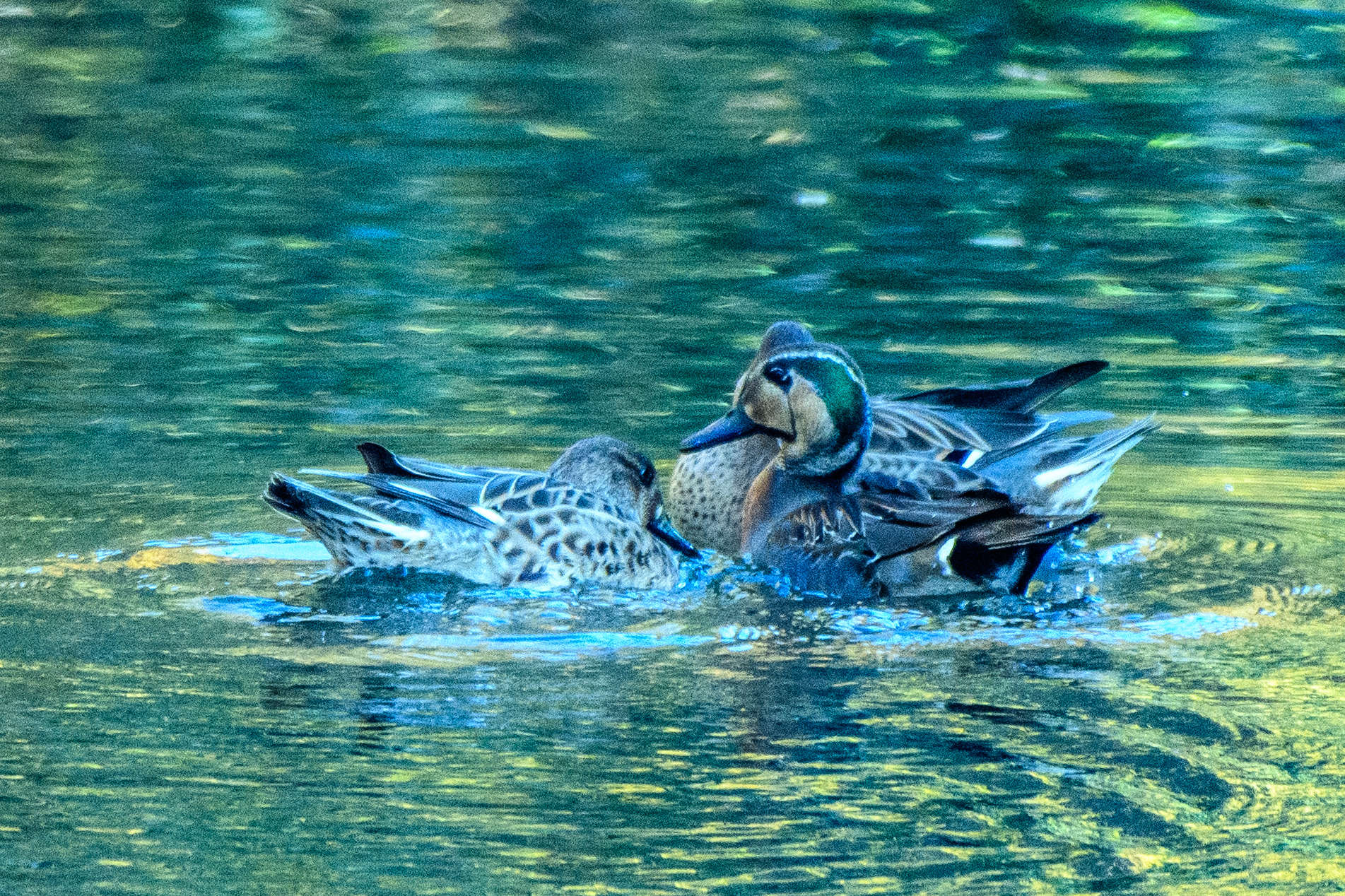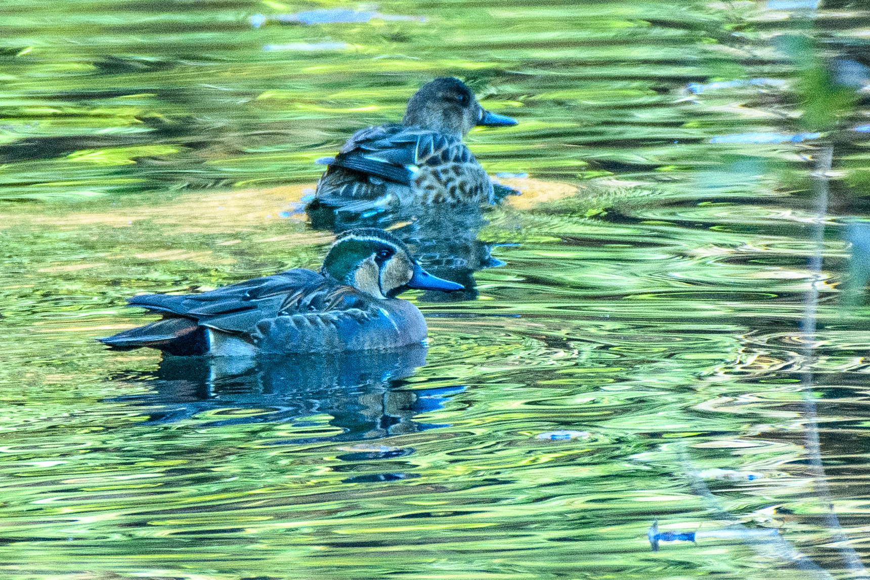 シベリア東部で繁殖し、中国東部・朝鮮半島・日本・台湾などで越冬するトモエガモは1970年代から大きく減少し絶滅危惧種になりました。なお、頭部の緑色とアイボリー色の紋様が巴状に見えることからその名前が付けらた様です。